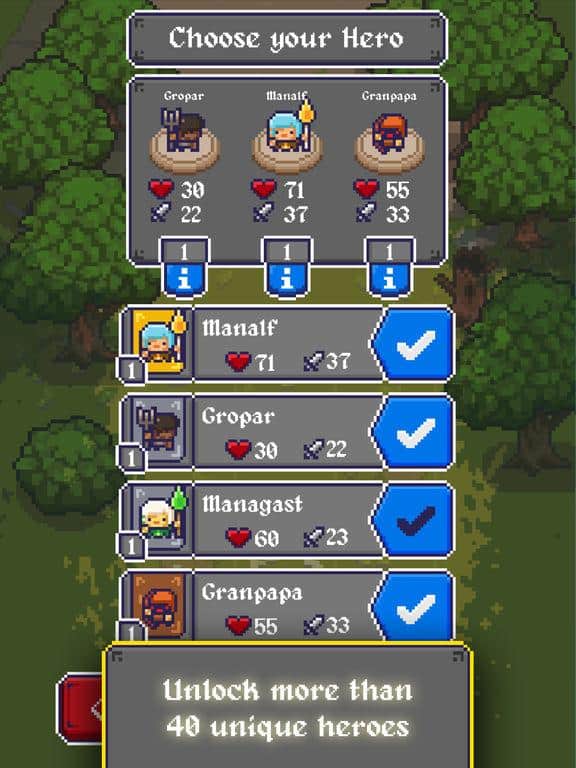 King Crusher - Roguelike Game – увлекательная игра где вы будете помогать королю дать отпор силам зла. В этой игре вы будете выступать в роли правой руки короля, и вам предстоит собрать группу бойцов из двенадцати классов персонажей и сразиться с монстрами. Перемещайтесь по огромному королевству и применяйте в бою уникальные особенности каждого героя. Прокачивайте и усиливайте свой отряд готов его к битве с сильным боссом. Пройдите все миссии и события игры и побеждайте всех королей.