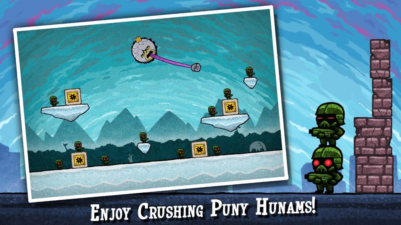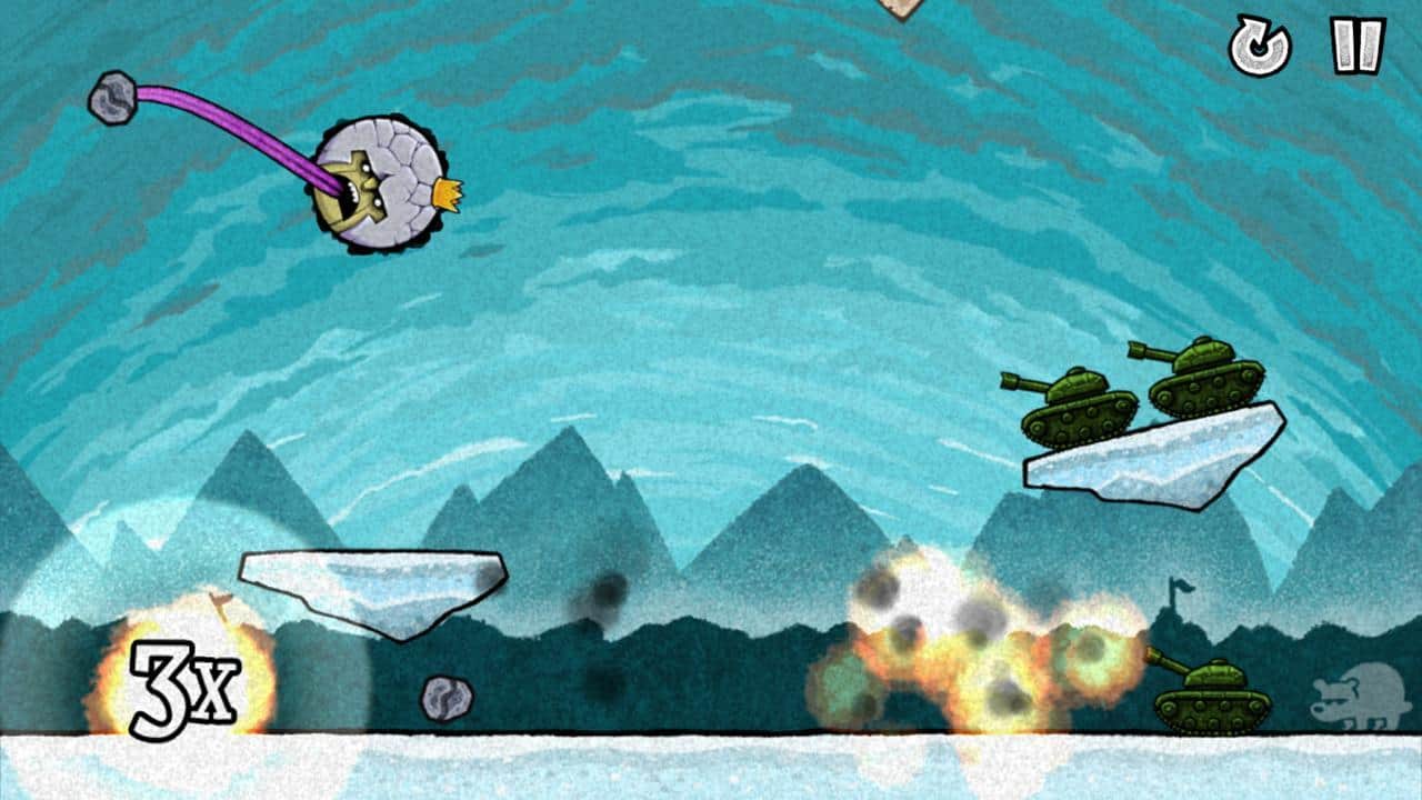 King Oddball - динамичная аркадная головоломка геймплей которой построен на основе законов физики, при этом вам необходимо верно рассчитывать как траекторию полета снаряда так и силу удара. А главной вашей целью будет уничтожения различных видов техники, танков, самолетов и даже сложных строительных конструкций. Всего же вам предстоит пройти более 120 уровней.