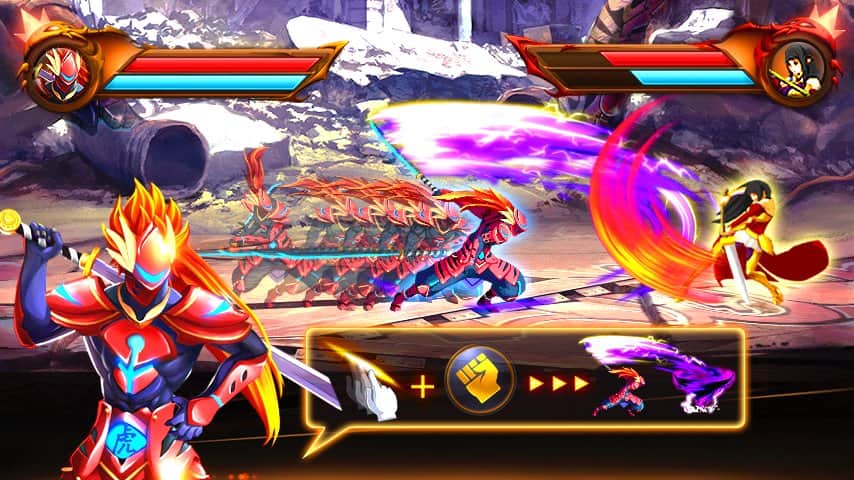 King of Fighting –отличный файтинг на андроид, в 2D графике. В этой игре вы возьмете под свой контроль отважного бойца из клана «Красный тигр» и проведете его по всем локациям игры, уничтожая одного врага за другим. Нажимайте на экран своего телефона или планшета и атакуйте врагов, применяя многочисленные удары и приемы. Используйте комбинации нескольких нажатий, чтобы выпустить всю силу воина и победить врага одним ударом. Применяйте комбо удары, а также используйте удары кожами и станьте королем боевых искусств в этой игре. Играйте в эту игру и наслаждайтесь отличной графикой и анимацией, а также многочисленными противниками и уникальными боевыми приемами.
