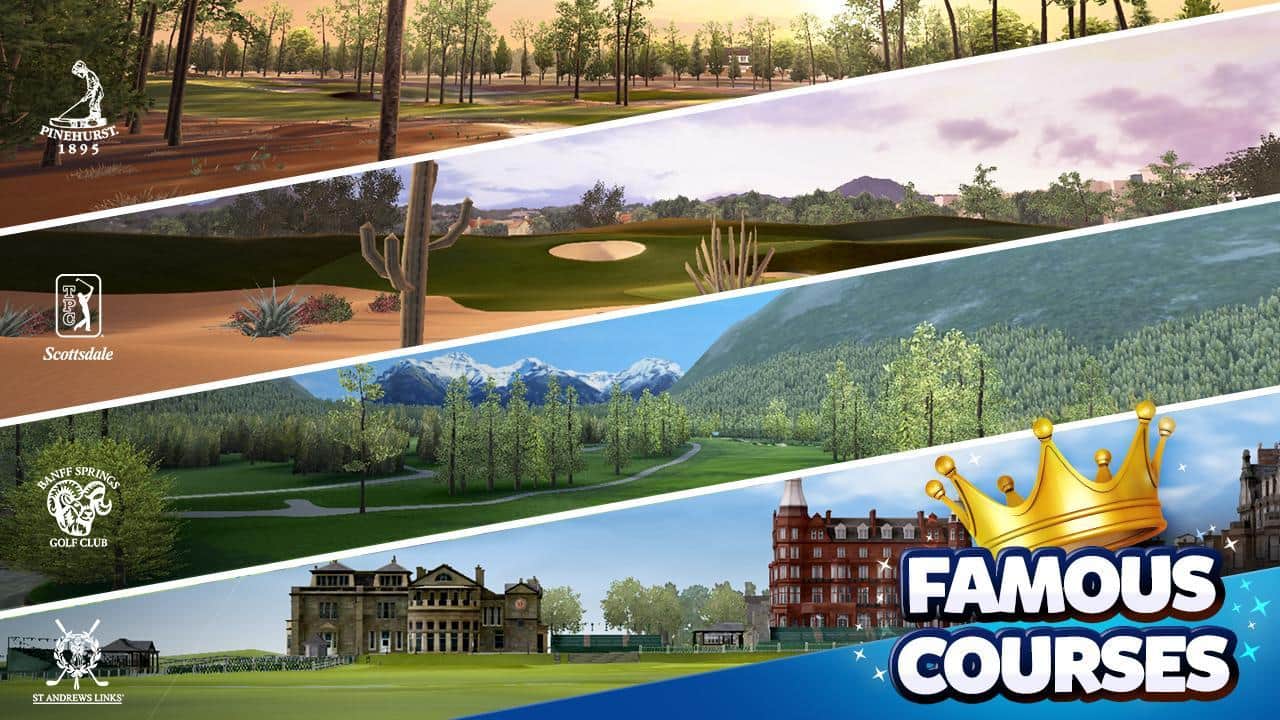 King of the Course Golf - реалистичный гольф на андроид, от знаменитого производителя EA. Играйте в гольф на различных полях, зарабатывайте очки и соревнуйтесь с друзьями за право стать королем гольфа. Более 300 уровней ждут вас в которых вы сможете открыть для себя совершенно новый подход к гольфу с различными режимами и плавучими платформами, на которых будет находиться лунка. А также вы сможете получить полезные советы от именитых игроков, таких как Бубба Уотсон, Ян Поултер и Киган Брэдли которые помогут вам победить.