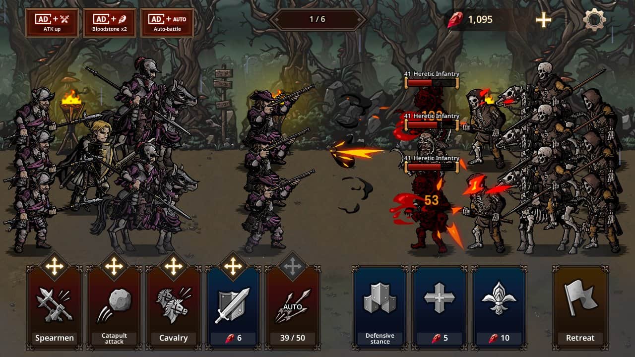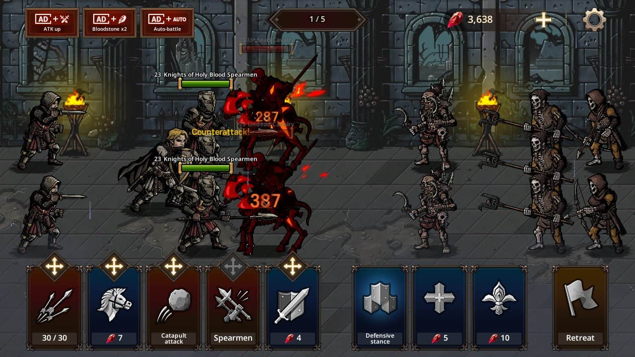Также в помощь в битвах нанимайте войска и солдат из разных стран мира. Побеждайте Повелителей вампиров и получайте экипировку, чтобы улучшить способности героя и своих войск.