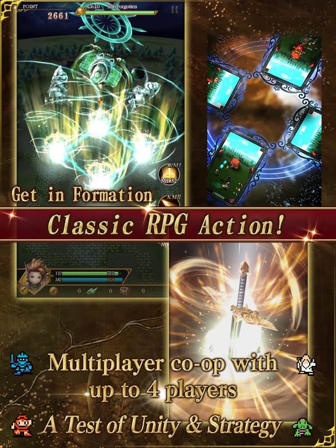 KING'S KNIGHT - знаменита ролевая игра от студии SQUARE ENIX впервые увидевшая свет уже более 30 лет назад. В момент своего появления игра совершила настоящий прорыв благодаря своей уникальной геймплейной механике, сочетающей ролевку и экшен аркаду. И вот спустя три десятилетия KING'S KNIGHT получила второе рождение в виде мобильной версии. В целом Андроид версия это полноценный порт той самой ролевки, сохранившей не только графическое исполнение, но и сюжетную линию. Сюжет игры развивается в сказочном мире, а основное действие начинается после того как злой дракон Tolfidan похищает из замка принцессу. Для освобождения дочери короля были выбраны четыре героя, в роли которых вам и предстоит играть.