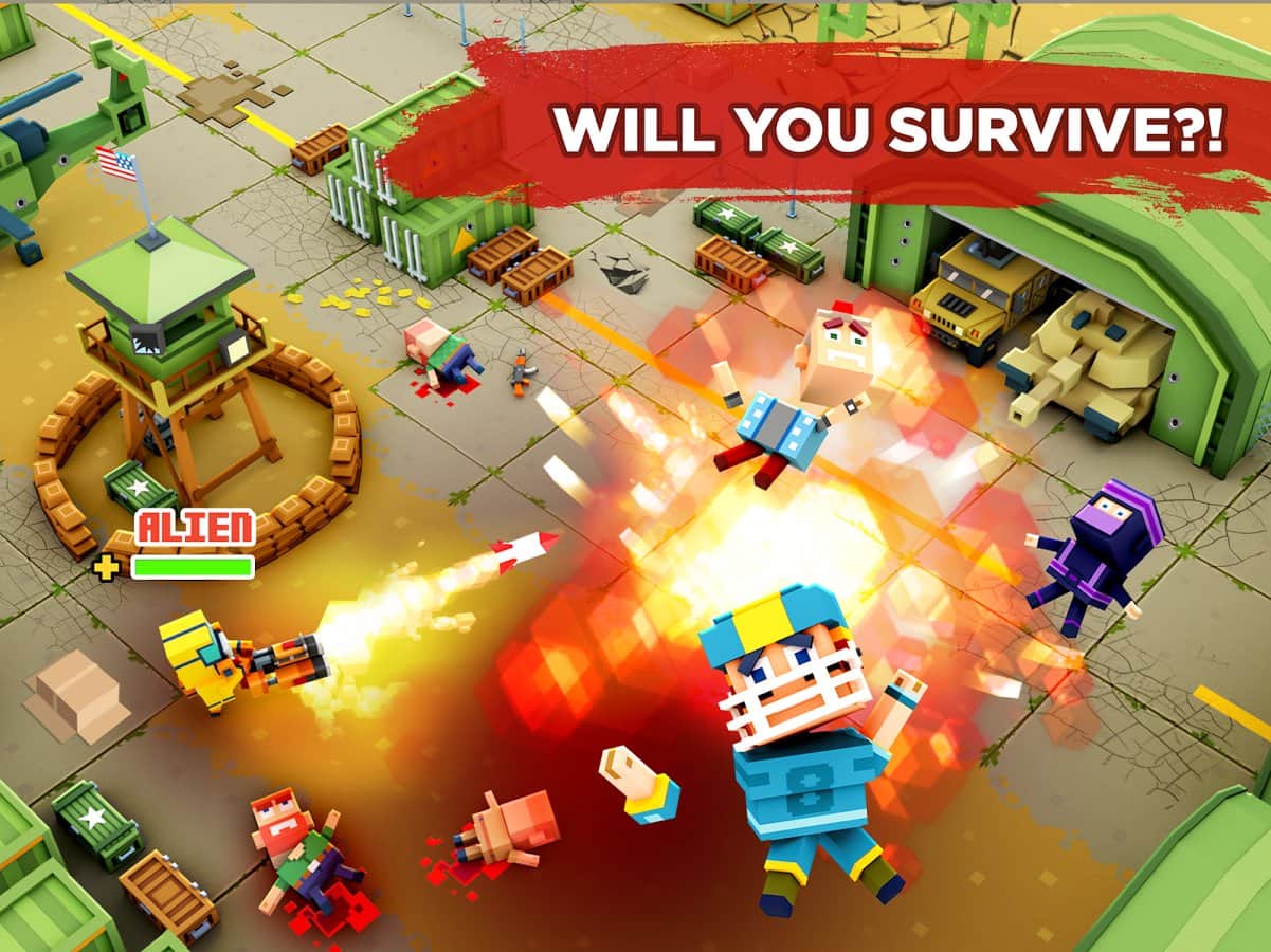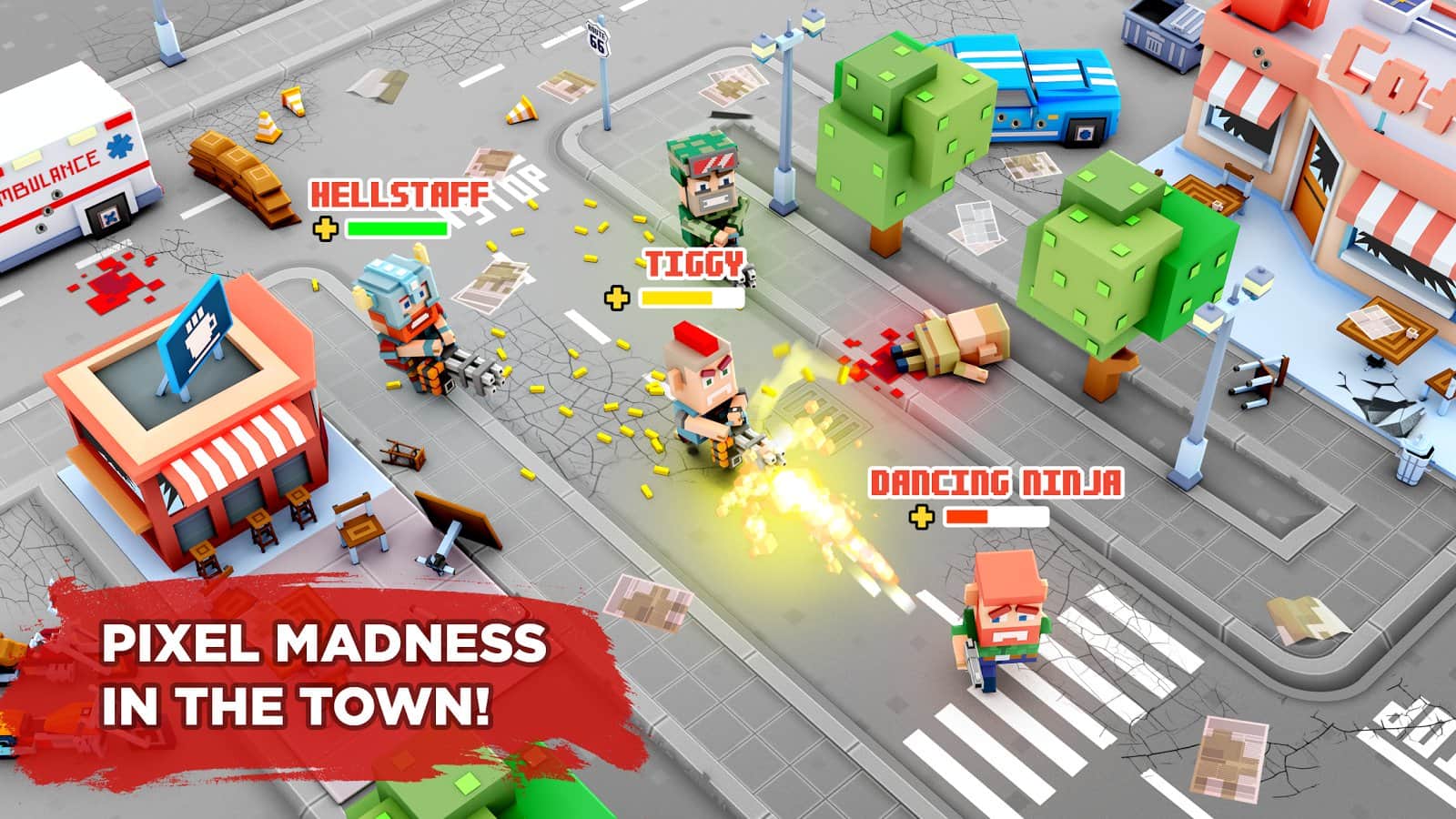 Kings of Guns – шутер на андроид, с видом сверху где вы возьмете в руки оружие и будете уничтожать все живое в этом городе. В этой игре вы окажитесь в мире после зомби апокалипсиса, где все живые люди превратились в зомби, и даже те кто остался в живых стал вашим заклятым врагом. С помощью мощного оружия такого как: пистолет, дробовик, АК-47, базука, огнемет, бензопила, а также трактор и танк уничтожайте не только зомби, но и других игроков передвигающихся по карте. Начните играть прямо сейчас и бросайте вызов самым лучшим игрокам и своим друзьям. Ведите огонь по движущимся мишеням и старайтесь выжить в этом опасном мире.