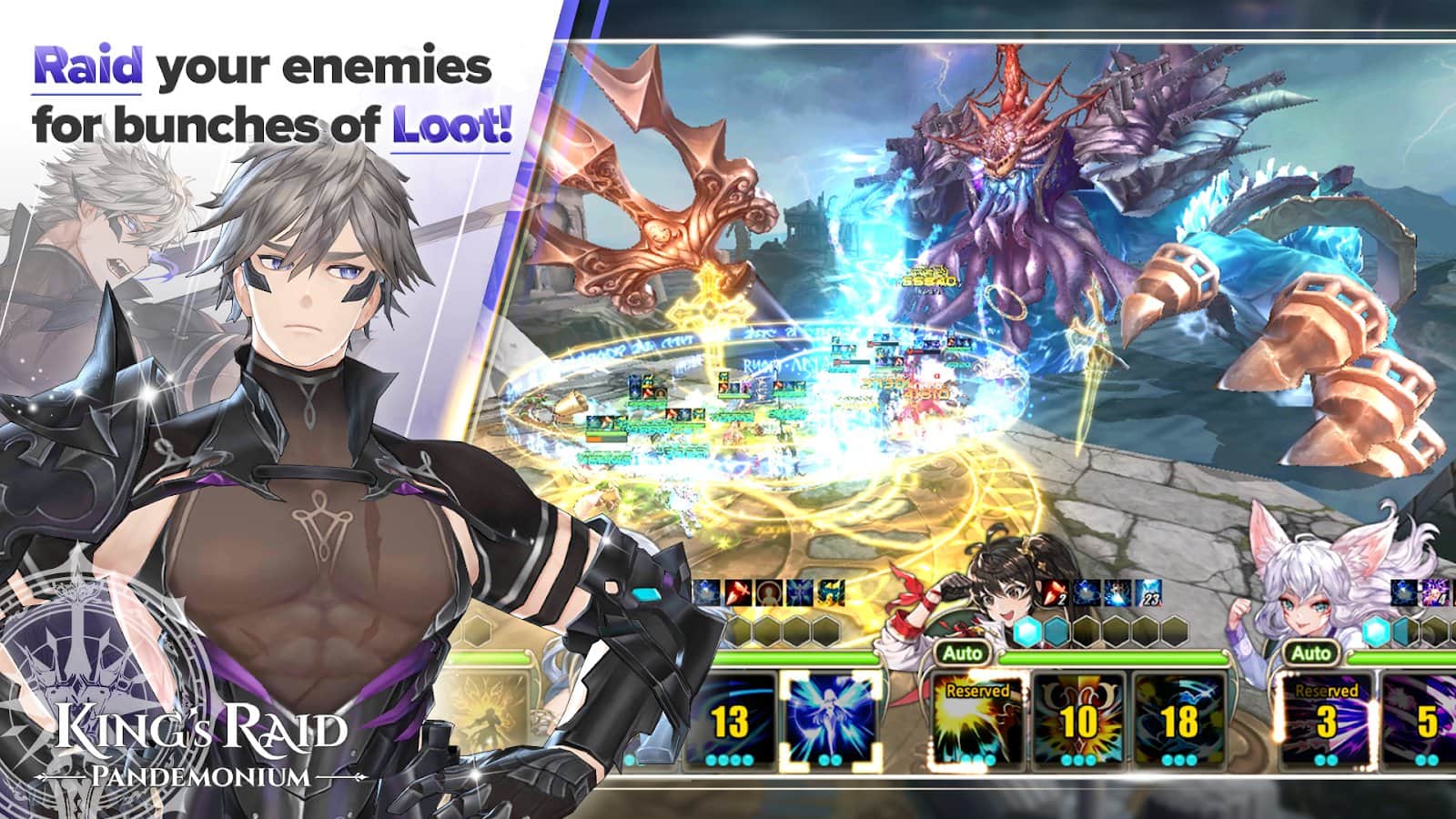 King's Raid – примите участие в битве проходящей в реальном времени и соберите свою непобедимую команду рейдеров. Выбирайте себе героя из представленных в игре персонажей и наделяйте его уникальной внешностью и способностями. Отправляйтесь в путешествие, где вам предстоит сразиться с сильными противниками и одолеть их. Одновременно в эту игру могут играть до девяти человек и выполнять различные задачи сражаться с боссами, устраивать рейды, бросать вызов соперникам или победить мирового босса. Применяйте в бою свои умения и способности, которые проложат вам путь к победе. Сочетайте различные навыки и достигните вершины мастерства. Примите участие в финальной битве и победите всех соперников.