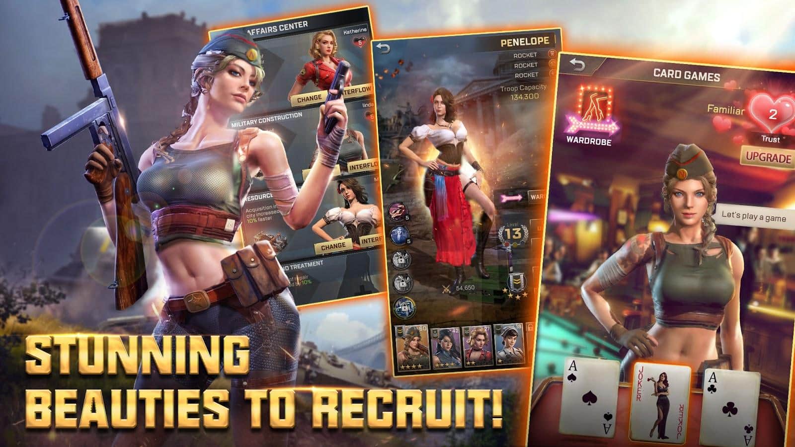 Kiss of War - военная, атмосферная игра рассказывает историю о группе очаровательных и невероятно мужественных женщин, у каждого персонажа своя предыстория и судьба. Каждая героиня находиться в подчинении у вас, руководителя военной базы. Уникальная система управления войсками даст вам возможность быть непредсказуемым на поле боя, а динамические военные сцены не оставят вас равнодушными к этой игре! Командуйте своими подчиненными! Создайте непобедимую армию во главе с вашими женщинами-офицерами. Объедините вашу армию с другими игроками и сокрушите ваших общих врагов вместе!