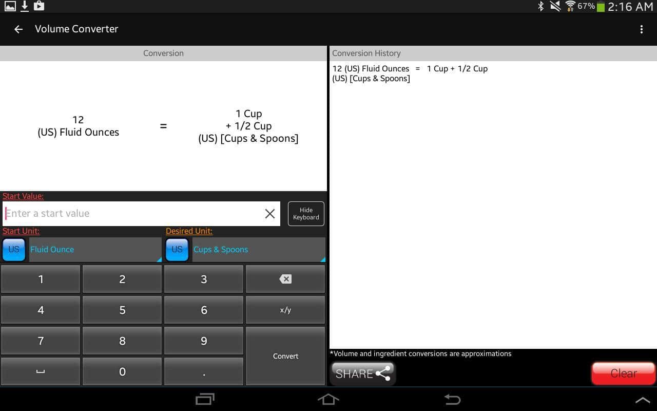 Kitchen Calculator (Converter) – замечательно приложение на андроид, которое, безусловно, станет находкой и незаменимым помощником на кухне для всех, кто любит вкусно готовить. По сути Kitchen Calculator (Converter) представляет собой гибрид калькулятора и конвертора, с помощью которого вы сможете легко конвертировать между наиболее распространенными измерительными единицами, используемых в кулинарии и выпечке.