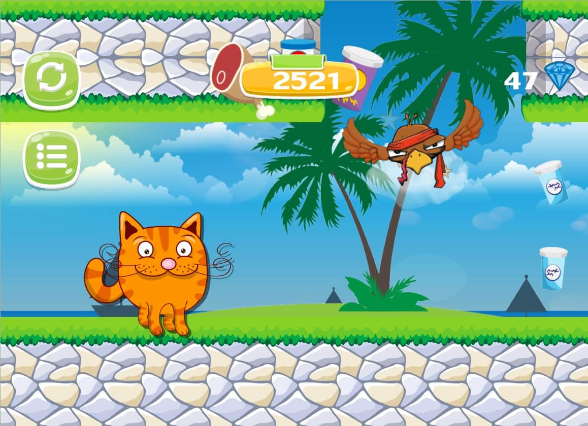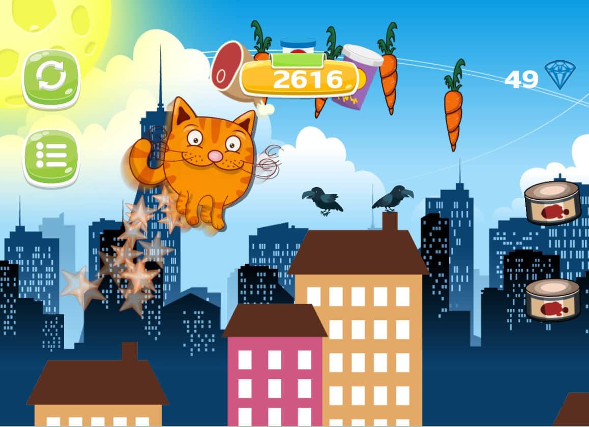 Kitten and food:adventure park – приключенческая игра для всей семьи где вы будете помогать коту Васе собрать всю еду. Запускайте кота в полет так чтобы он летя по определённой траектории и собирал всю еду на своем пути. Игра порадует опытных игроков отличной физикой и захватывающим геймплеем который подойдет для разных возрастов. Отправляя кота Васю в полет остерегайтесь столкновения с всевозможными препятствиями в виде птиц, кольев и высотных домов. В игре представлено 60 уровней с двумя бонусными, отличная графика и веселая фоновая музыка. Играйте и получайте удовольствие от игры.