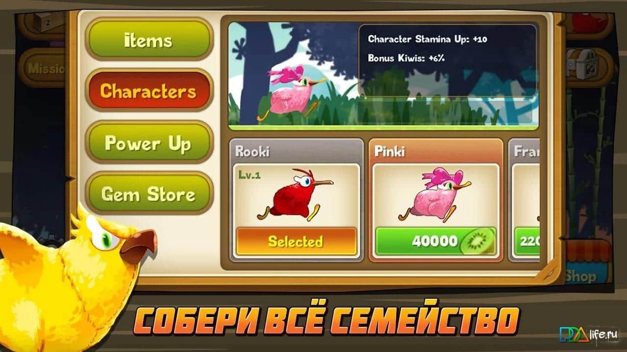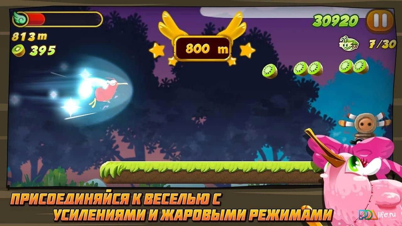 Kiwi Dash - Отличный раннер на андроид от компании Gamevil. Цель игры – вернуть украденный тотем, при этом собирать различные фрукты, а также укорачиваться от препятствий. Так же на вашем пути будут попадаться различные усиления и бонусы. Вас ждет увлекательное времяпровождение с отличной игрой!