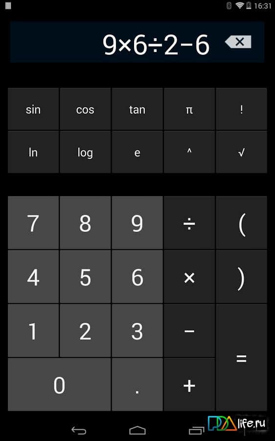 KK Calculator - перед вами калькулятор для андроид. Калькулятор - из nexus 5, выполняет все функции калькулятора. По внешнему виду и стилю имитирует андроид 4.4.2. Очень нужное и удобное приложение. Легко и просто вычислить любые сложные величины, а интерфейс радует глаз.