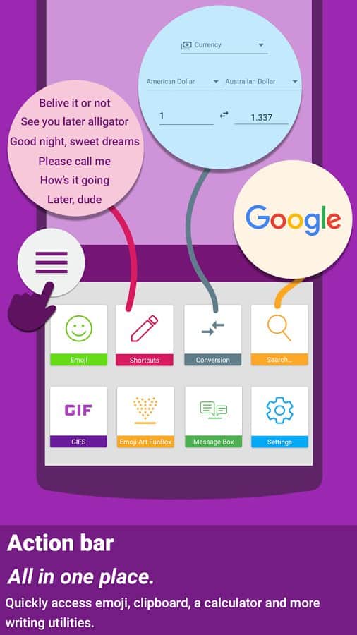клавиатура ai.type ПЛЮС - революционная клавиатура для андроид позволит быстро и эффективно набирать текст. Программа как бы предугадывает, что набирает пользователь, и предлагает варианты продолжения с учетом контекста и смысла. Таким образом, набор пользователя сводится к минимуму движений.