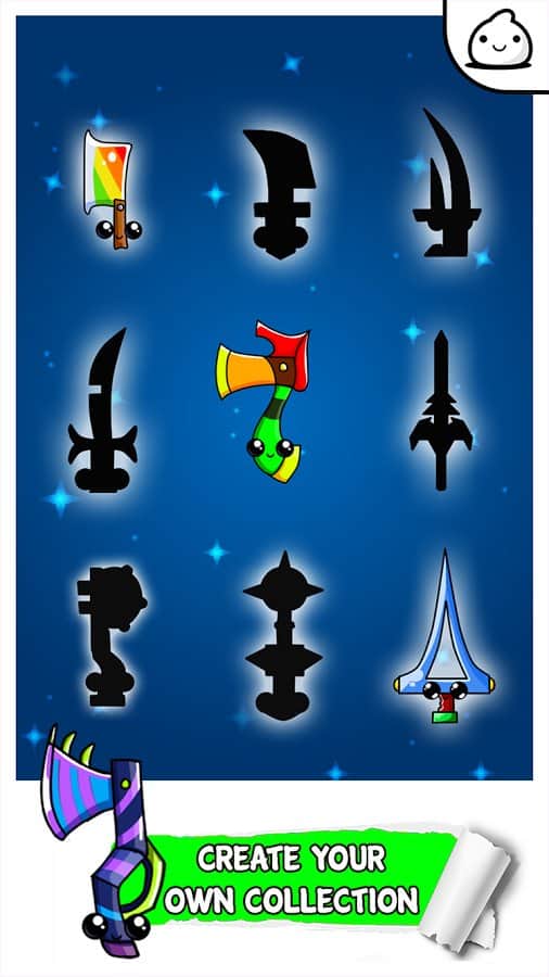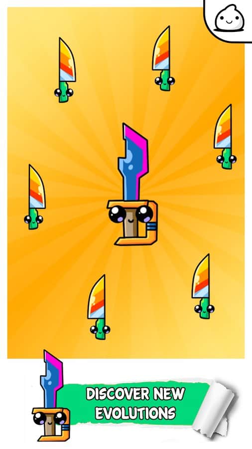 Knife Evolution - Flipping Idle Game Challenge – веселая игра на андроид, где вы будете участвовать в эволюции ножей. В этой игре вашей главной задачей будет нажимать на экран своего телефона или планшета и соединять между собой различные ножи получая совершенно новый вид. Превращайте обычные ножи в невероятные формы и виды. Путешествуйте по различным странам, где вы встретитесь с новыми необычными ножами и попробуете произвести эволюцию, заполняя весь мир новыми ножами. Собирайте нужные вам монетки и открывайте для себя новые виды холодного оружия, это могут быть как ножи, так и топоры. Всего в игре представлено 30 видов ножей, множество локаций и несколько этапов игры.