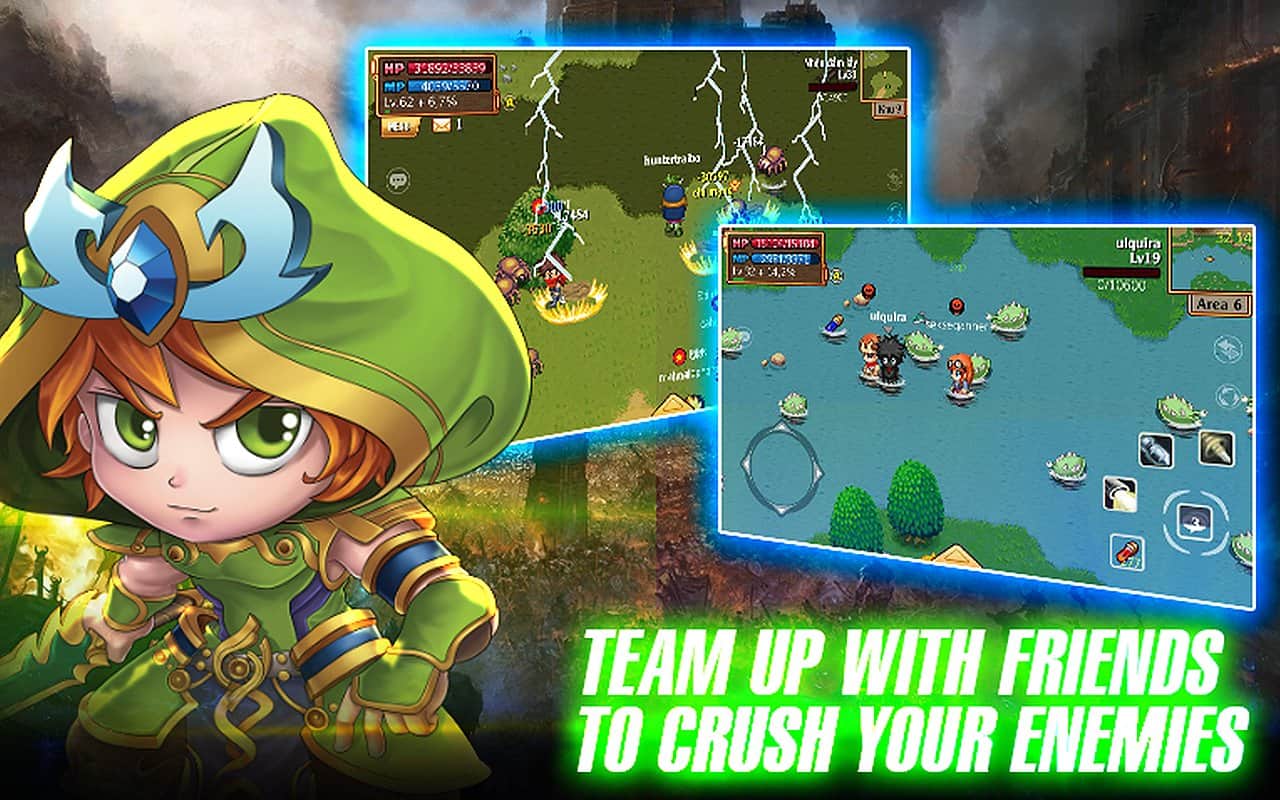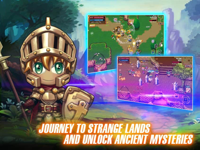 Knight And Magic – приключенческая игра на андроид, где вы в компании героев будете путешествовать по миру и пытаться найти потерянный город золота. Эта игра перенесет вас в далекие времена, где существовали огромные замки и монстры. В этой игре вы вместе со своим соратником будете исследовать опасный мир и пытаться прокачать своего героя до класса волшебника, стрелка, ассасина или воина. Перемещайтесь по опасному миру и вступайте в схватки с сильными монстрами и злодеями. Создавайте свою непобедимую гильдию с другими игроками со всего мира и вступайте в эпические схватки на арене. Сделайте своего героя непобедимым и сразитесь с сильным боссом.