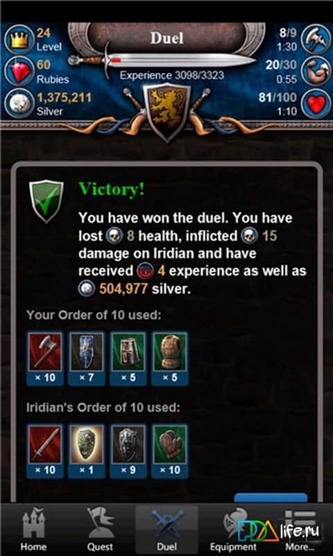 Knight Game - игра в которой вы пройдете путь от непритязательного вассала до короля. Король умер и теперь все его подчиненные и дворяне пытаются занять его место. Вашей задачей будет, собрать огромную армию путешествуя по маленьким деревушкам и небольшим городам и направить свой благородный орден для захвата власти. Выберите для своего ордена самое лучшее снаряжение и оружие и испытайте силу своих бойцов в неравных боях. Правильно и тщательно выбирайте себе воинов и союзников для того чтобы одержать безоговорочную победу и стать справедливым королем.
