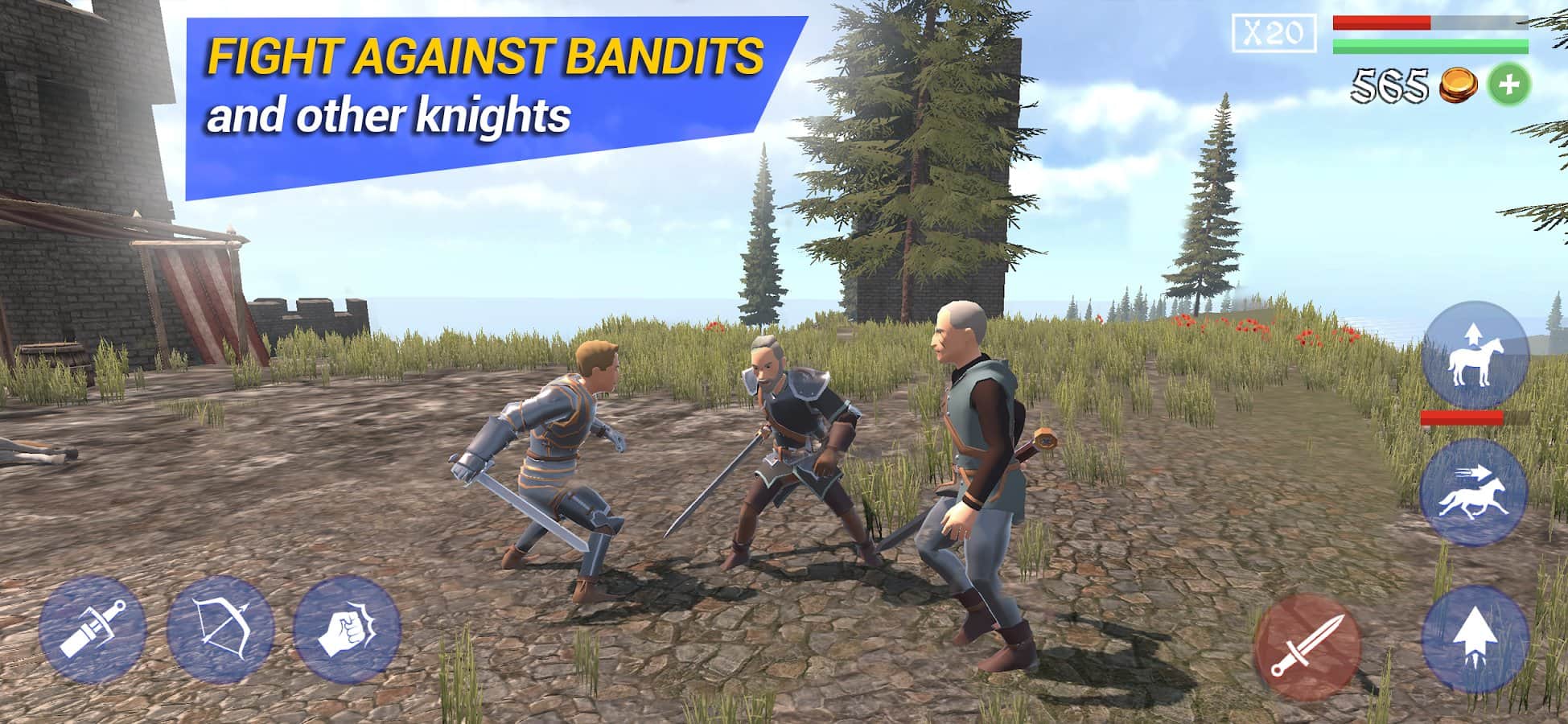 Knight RPG – Knight Simulator – отличный ролевой проект, в котором игроки попробуют себя в роли средневекового рыцаря. После длительных тренировок предстоит череда подвигов, сражений и всего остального, что позволит каждому продемонстрировать, что главный герой достоин этого статуса. Мир необычный, поэтому помимо бандитов и противников в доспехах здесь будут еще и монстры. Так что есть где проверить остроту заточки меча, отточить свои навыки действий в полных доспехах, а также научиться виртуозно управлять лошадью. Хорошая графика и огромное разнообразие возможностей делают игру приятной находкой для зрителей.