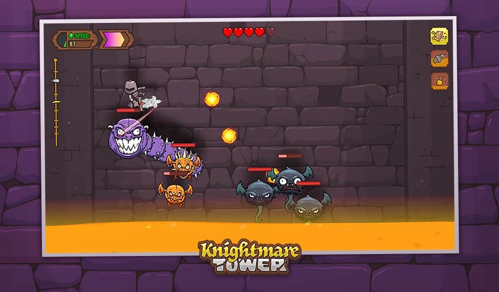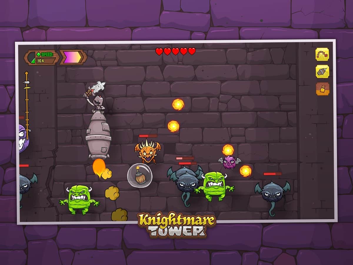 Knightmare Tower - Привлекательная аркада на android про приключения одинокого рыцаря, который пытается остановить мировой апокалипсис. В один прекрасный момент портал в параллельный мир открылся, и оттуда полезли неизвестные твари, которые захотели захватить этот мир. В вашем приключении так же будет и спасение принцессы, и спасение от кипящей лавы. В игре доступно два режима: кампания и выживание.