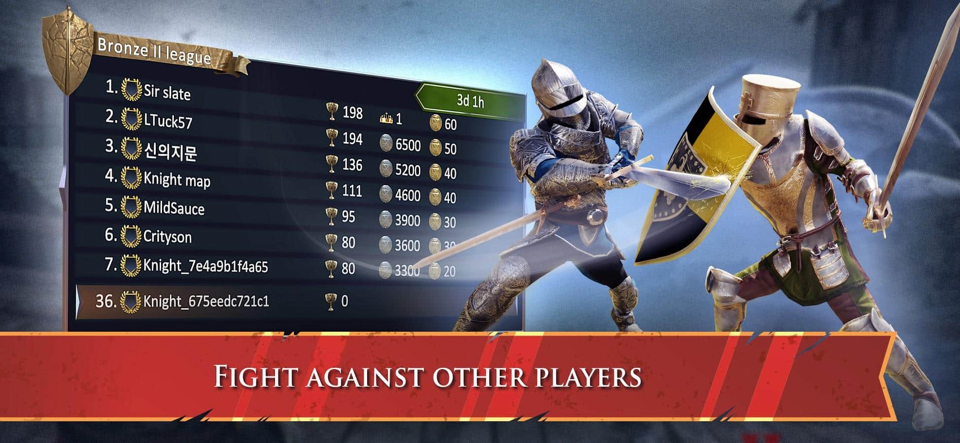 Knights Fight 2: честь и слава – станьте частью эпичных битв и сражений и возьмите под контроль рыцаря. Вам предстоит выполнять сложные мисси и задания, отправляйтесь в поход и выживайте в тяжёлых условиях, носите громоздкие доспехи, но они защитят вас от удара противника. Атакуйте первым и отвечайте на выпады врагов, уворачивайтесь от ударов, находите союзников и объединяйте усилия, чтобы сразить как можно больше врагов и соперников. Оттачивайте движения и комбинируйте приемы, покупайте усиления и следите за уровнем здоровья.