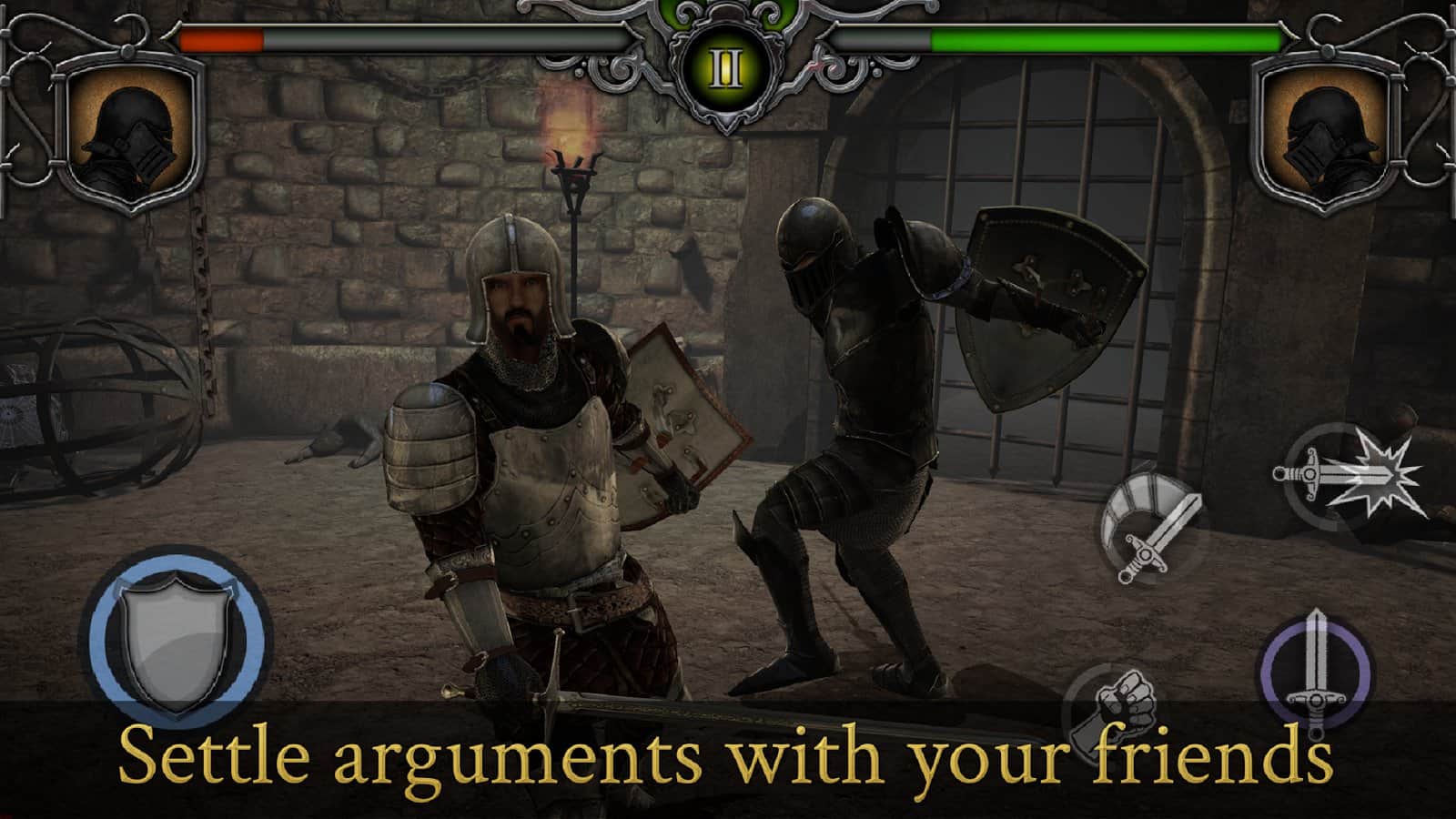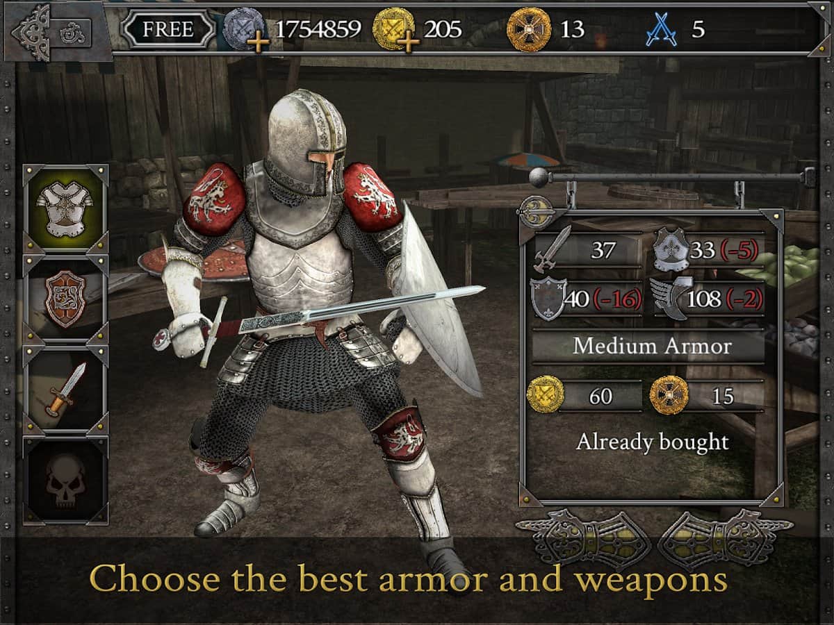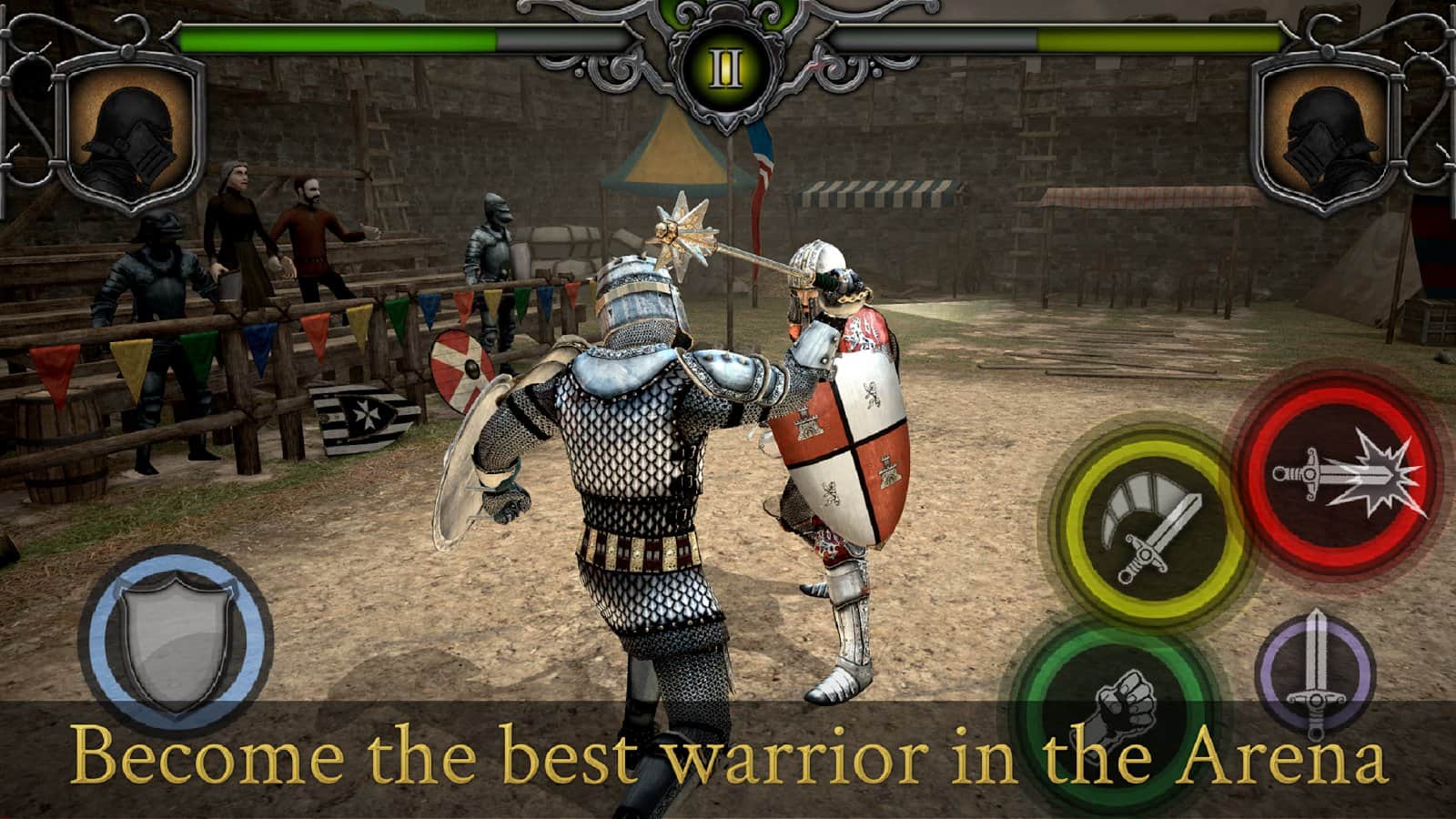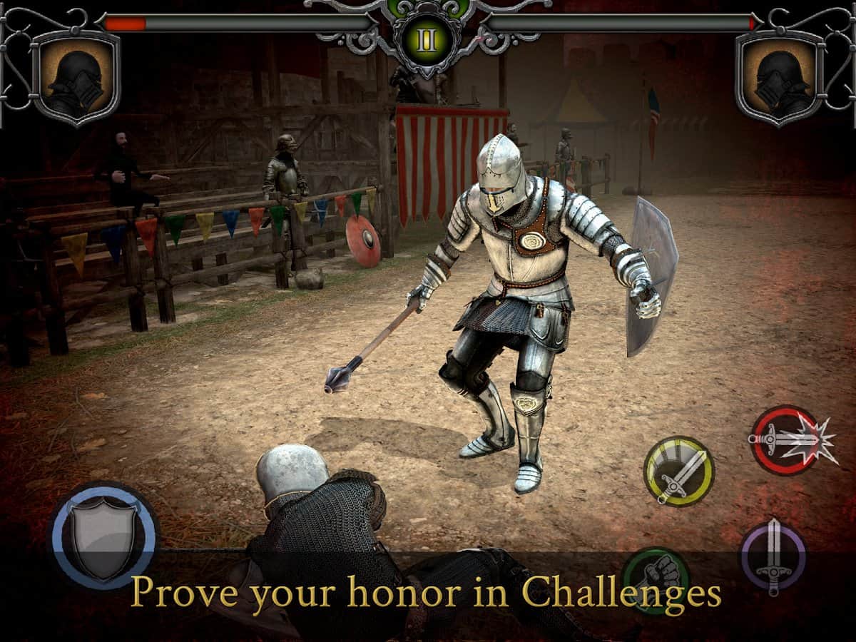 Тысячи реальных соперников и Средневековье ждут геймера в игре Knights Fight: Medieval Arena. Холодная сталь и острое вооружение в битвах будут пробивать броню соперника и приносить яркие эмоции от победы в жестокой схватке. А все начнется со статуса обычного рекрута без опыта настоящих сражений в рыцарских дуэлях. Но постоянные битвы и успехи в развитии своих навыков обязательно сделают игрока легендарным рыцарем и воином королевства, заслужившим награды и уважение. Заставь врагов дрожать только при виде твоего имени в списках противников!