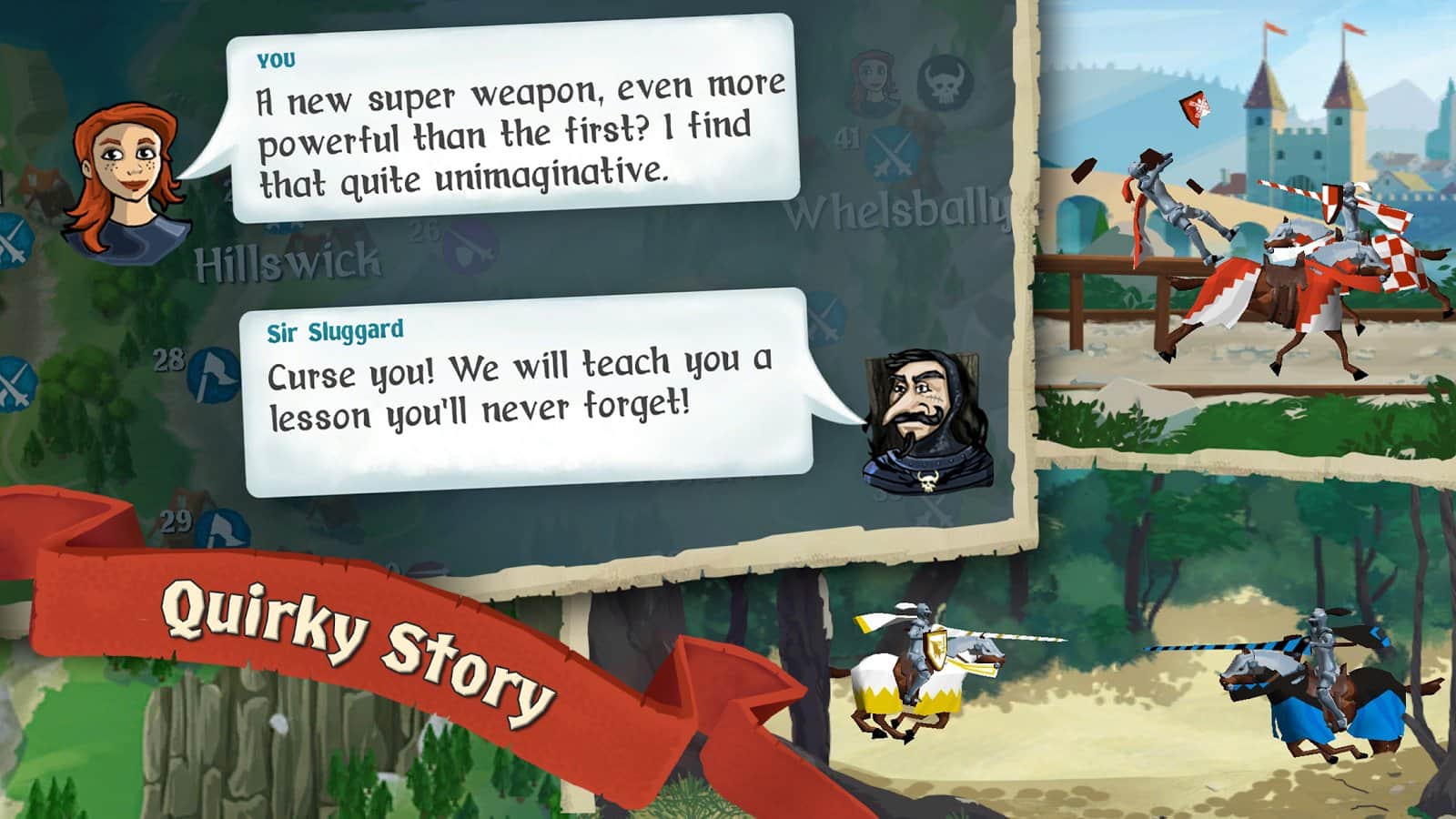 Knights & Snails – веселая стратегия на андроид, в которой вы будете участвовать в рыцарских турнирах. Это уникальная игра, сочетающая в себе несколько жанров стратегии и головоломки. В этой игре вашей задачей будет управлять рыцарем с улиткой, и участвовать во всех рыцарских турнирах побеждая одного врага за другим. Вас ждут 150 неповторимых турниров и более 100 рыцарей обладающими своими уникальными способностями, которых вам предстоит побороть. Путешествуйте по всему королевству и прилагайте немало усилий для того чтобы заполучить все трофеи, но будьте бдительны гнусный сэр Ленивец будет всегда стоять у вас на пути и мешать осуществить задуманное.
