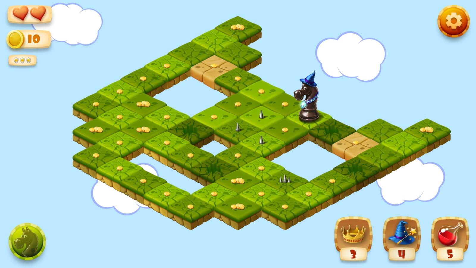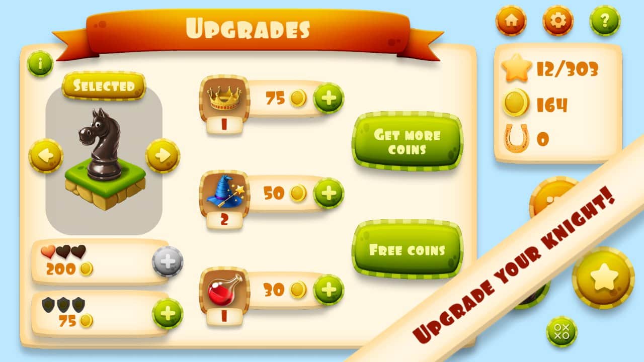 Knight's Tour - новая вариация древней игры головоломки основанной на механики шахмат, а именно движению фигуры коня. Двигаясь фигурой в виде буквы "Г" ваша задача перемещаться таким образом, чтобы собрать все монетки и при этом не зайти в тупик. Ко всему прочему на игровом поле вас будут поджидать и другие неприятности, в виде вражеских шахматных фигур. Всего в Knight's Tour более сотни разнообразных уровней, выполненных в отличной графике, при этом разработчики подключили всю свою фантазию и реализовали нелинейные локации, проходя которые вы сможете реализовать все свои тактические навыки. Уровень сложности каждой доски разный и вариантов прохождения десятки, так что все будет зависеть только от вас. Не забыли создатели игры и об возможности развития, а так же о системе достижений.