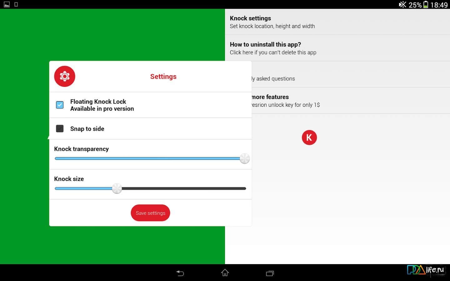 Knock Lock – простое приложение от разработчика Damian Piwowarski, которое блокирует экран устройства двойным нажатием по заранее определенной области на экране. Так что выбирайте то самое место на экране и будьте уверены, что ваш гаджет будет надежно заблокирован.