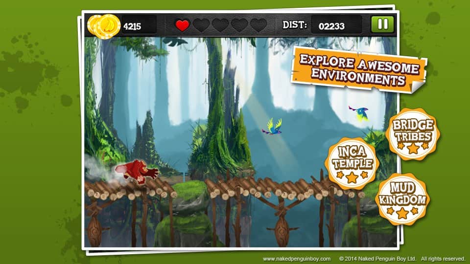 Knuckles: Beaten Path - горизонтальный ранер с классическим геймплеем и отлично проработанной графикой в котором вам предстоит взять на себя управление персонажем по имени Knuckles. Вам наверно интересно кто же это. Что же не будем вас томить, Knuckles это последний представитель чрезвычайно редкого и уже вымирающего вида горилл проживавших в Центральной Африке. И теперь ваша задача помочь герою в его бесконечном забеге к более пригодным для жизни местам.
