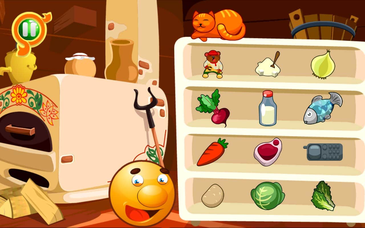Колобок и Чудо-Печка - развивающая игра на андроид, созданная для маленьких детей в возрасте от 2 лет. Игра выполнена в рисованном сказочном стиле, которая обязательно должна понравиться вашему малышу. В этой игре ваш ребенок будет помогать колобку находить нужные продукты для того чтобы приготовить уху, блины, пироги с яблоками, сварить ягодный компот, а также приготовить вкусный торт и украсить его по своему усмотрению. Гладьте кота и участвуйте в мини-играх.