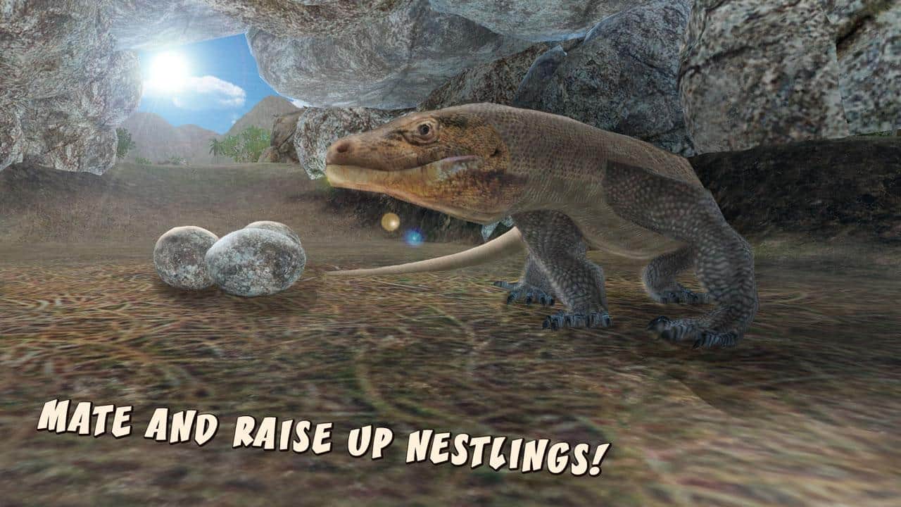 Komodo Dragon Lizard Simulator – в этой игре на андроид, вы возьмете под свой контроль огромного коморского варана и будете исследовать мир вокруг себя. В игре вы будете управлять вараном, и вступать в схватку с другими животными и хищниками. Перемещайтесь по опасному и пугающему миру и будьте готовы к эпическим битвам с врагами. Подкрадывайтесь к своей добыче и нападайте, вцепляясь в нее острыми когтями и зубами. Постоянно следите за состоянием своего варана, определяя его голод и усталость. Ведите охоту на добычу и повышайте опыт своего варана, а также меняя его внешний вид. Помогите своему варану продолжить свой род и завести потомство.