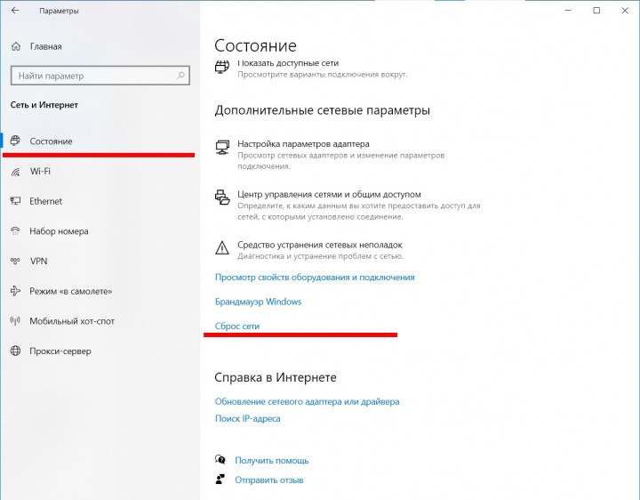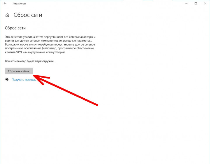 Чтобы сбросить сетевые настройки, переходим по пути Пуск — Параметры — Сеть и Интернет — Состояние — Сброс сети и в открывшемся окне нажимаем на “Сбросить сейчас”. После этого ваш компьютер будет перезагружен, а все внесенные настройки для беспроводной сети сброшены.