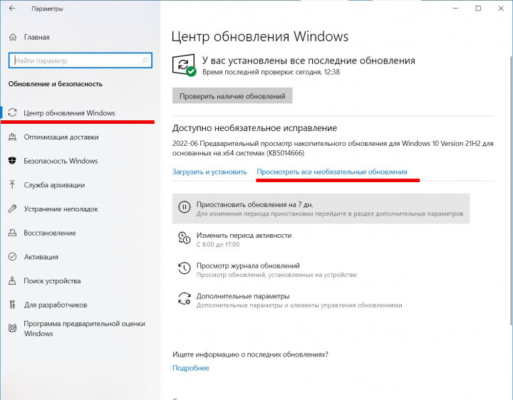 Это относительно простой, но при этом эффективный способ решения многих проблем, так что не стоит его игнорировать. Лучше всего искать обновления на сайте производителя оборудования, но учитывая что мы говорим о беспроводных адаптерах, найти нужное может быть непросто. Так что мы рекомендуем переходить по пути Пуск — Параметры — Центр обновления Windows — Просмотреть все необязательные обновления. По этой ссылке вы найдете пункт обновление драйверов, который нам и нужен.