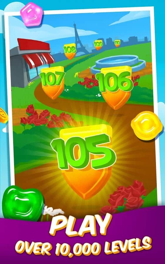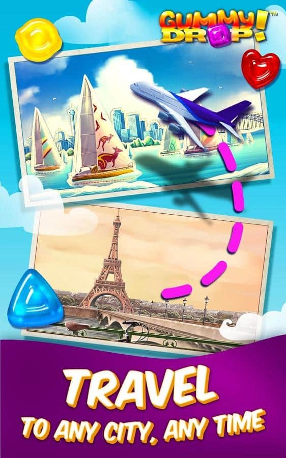 Конфетки! / Gummy Drop! - Увлекательная головоломка по типу «три в ряд» на андроид от компании BigFishGames. Вам предстоит поучаствовать в путешествии по всему миру, и поиграть в архитектора. Разгадайте загадки сладких конфет и получите материалы для восстановления карты мира. Уровень сложности в игре будет повышаться по мере прохождения. Также в уровнях есть усиления, которые помогут вам пройти трудные задания. Если вы решите поиграть онлайн, то вас ждут ежедневные бонусы и соревнования с друзьями.