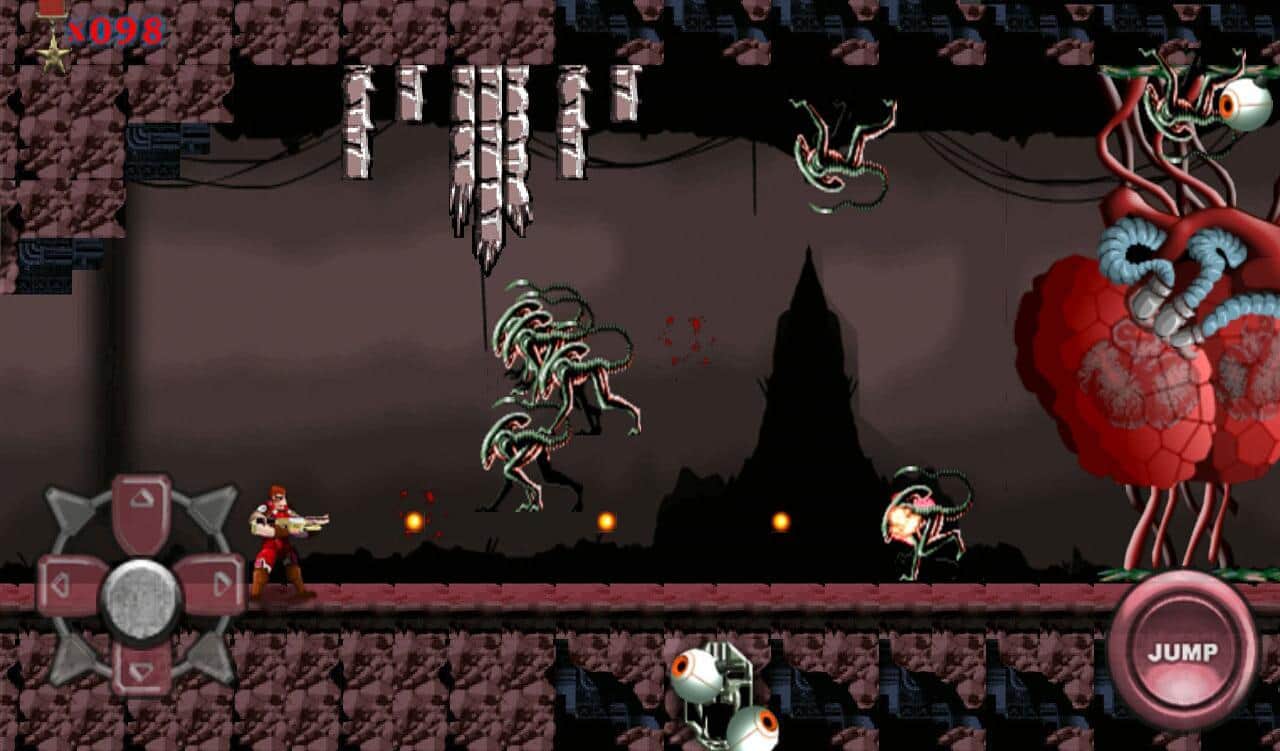 Kontra Pro – динамичный экшен на андроид, который перенесет вас в детство. В этой игре с пиксельной графикой вашей задачей будет управлять Рембо солдатом и провести его по многочисленным и разнообразным уровням уничтожая монстров и инопланетных захватчиков. Ведите вперед своего героя и ведите непрерывный огонь по врагам, не давая им не единого шанса подобраться к вам. В начале игры у вас будет 30 жизней благодаря которым вы сможете пройти 20 неповторимых уровней игры. Уничтожьте более 40 монстров и станьте супер контра звездой спасая все человечество.