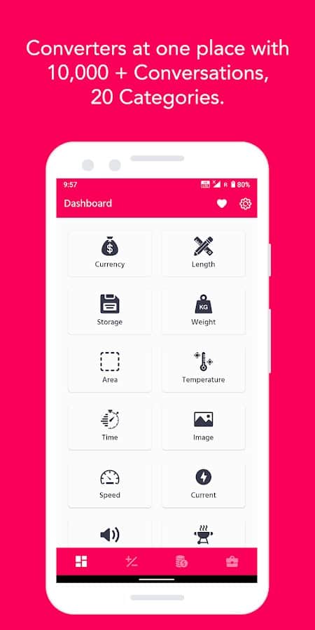 Конвертер всех единиц - это удобный инструмент, который позволяет легко и быстро преобразовывать различные единицы измерения. В нем представлено более 10000 преобразований единиц в 46 категориях, включая валюту, длину, вес, время, температуру и другие. Кроме того, приложение содержит 12 математических калькуляторов, 16 финансовых калькуляторов и 24 полезных инструмента для повседневной жизни. Одним из главных преимуществ конвертера является интуитивно понятный пользовательский интерфейс, который делает использование приложения очень простым и приятным. Вы можете сравнивать юниты в одном месте, добавлять свои любимые юниты в избранное и получать реальные курсы обмена валют в режиме реального времени для всех стран.