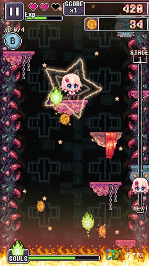 Котел Дьявола – отличная пиксельная аркада, в которой вы будете скользить по платформам, при этом вам нельзя прыгать и поэтому упасть в лаву становится ещё легче. В игре огромное количество разнообразных бонусов, которые помогут вам в прохождении игры. Также за монеты в конце уровня вы можете купить себе разнообразные вещи в игровом магазине.