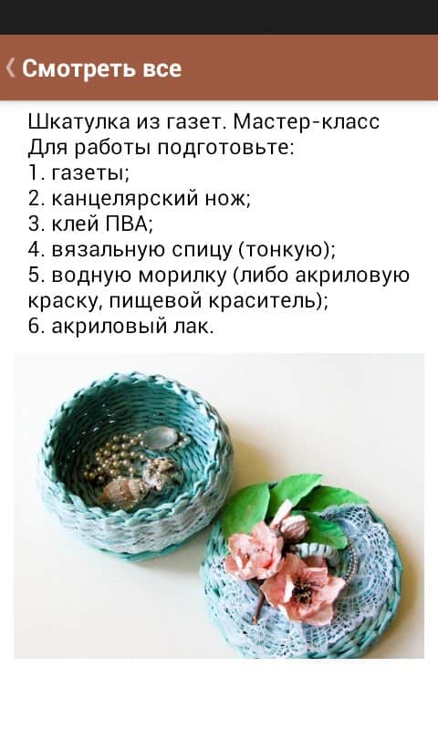 Креативные идеи для жизни – творчество является неотъемлемой частью жизни человека, которое может проявляться во всех видах его деятельности. Предлагаем вашему вниманию приложение, включающее в себе невероятные идеи на все случаи жизни, оригинальность которых придется по душе многим и найдет свое применение в жизни. Здесь вы найдете и красочный дизайн интерьера, и переделки старых вещей, и создание аксессуаров ,а так же многое, многое другое. В общем, всем кто любит делать что-либо руками, рекомендуется для скачивания, вам будет чем заняться в свободное время!