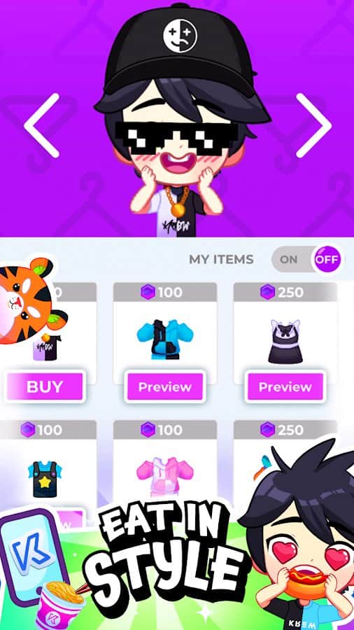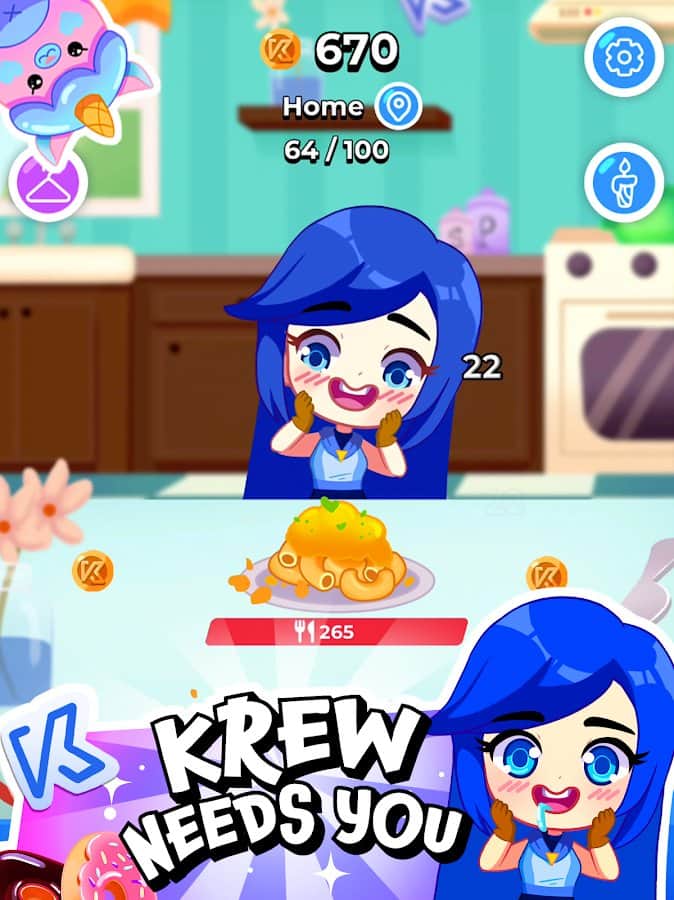 KREW EATS - cыграйте за забавную команду, сражающуюся за лучшее и самое быстрое поедание всей еды на столе. Посетите многие заведения, с намерением попробовать любые блюда на вкус и сразиться там. Коллекционируйте животных для помощи в трапезах, подбирайте стильную одежду под каждый поединок, играйте за интересных персонажей и заработайте не только опыт, но и много денег. Насколько вам хватит терпения и сил, чтобы съесть буквально все на своем пути? Не дайте шанса кому-то другому вас обогнать, будьте лучшими.