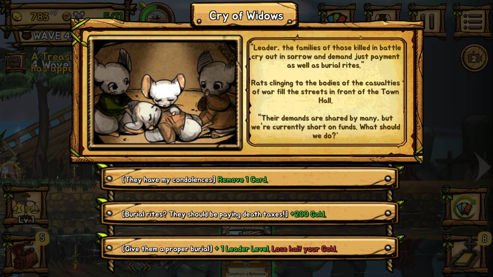 Сразитесь с заклятыми врагами Крысополиса, чтобы любой ценой защитить его! В игре не будет времени для раздумываний будущих действий, ведь все происходит в быстром режиме с максимальной прокачкой. Изучите и используйте больше 500 уникальных карт с определенными способностями, пройдите больше 100 увлекательных событий, познакомьтесь с 6 прекрасными лидерами и узнайте какая именно концовка ждет вас. Игровой процесс рассказывает интересную историю милых крыс, которые ищут место для постояяного жилища. Пройдя этот путь с ними, вы узнаете какие подводные камни существуют при создании дома и какими способами их можно преодолеть.