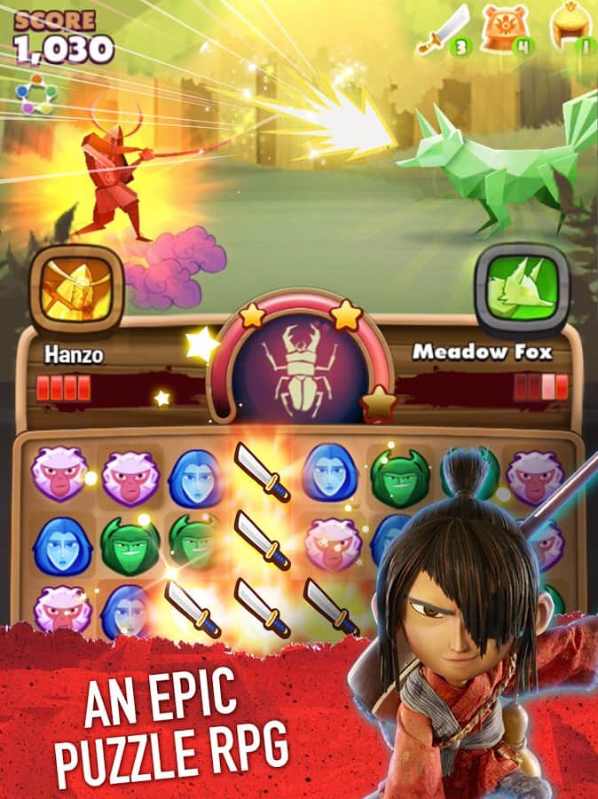 Match 3 Quest - логическая игра которая на момент своего выхода совершила настоящую революцию, совместив в себе несколько совершенно различных игровых механик, логической головоломки из серии три в ряд и классической боевой ролевки. В последствии многие разработчик пытались создать что -то подобное, но буквально у всех получались лишь клоны и аналоги. Студия Fifth Journey Limited решив сделать нечто подобное заручилась поддержкой компании LAIKA, создавшей такие шедевры мультипликации как «Коралина в Стране Кошмаров» и «Семейка монстров». Как следствие игра получив знакомый игровой процесс заметно приукрасилась. Прекрасная графика, харизматичные персонажи, интересная игровая возможность с созданием фигурок оригами, придало Kubo: A Samurai Quest™ совершенно новый вид.