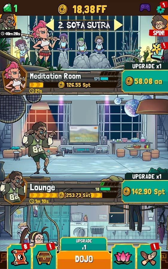 Kung Fu Clicker – кликер на андроид, где вы будете управлять школой боевых искусств Кунг-Фу. Опасный и смертельный клан Клыков нападает на соседние школы боевых искусств, и теперь вашей задачей будет дать им отпор. Нанимайте на работу опытных мастеров каратэ и кунг-фу и обучайте новых учеников этому искусству. Сразитесь за свою школу и возродите былую славу об ее выпускниках. Бросайте вызов другим школам и поднимайтесь в таблице лидеров на самый верх, пытаясь заполучить черный пояс. Нажимайте как можно чаще на экран своего телефона или планшета и получайте доход от своей школы.