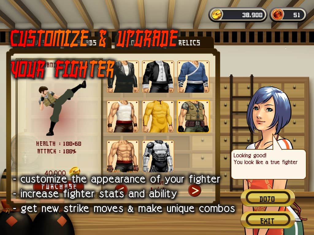 Классная игра, особенно понравилось составлять собственное комбо ударов, да и в общем прикольная механика, но, к сожалению, пришлось забросить эту игру из-за того, что в случае поражения снимут все заработанные деньги. Я не понимаю, ЗАЧЕМ это делать? Уже во второй игре подобный бред, ну если я проигрываю, значит играю хреново, либо мне нужна прокачка, а как я должен прокачиваться, если снимают деньги? Поэтому и я сниму этой игре половину баллов.