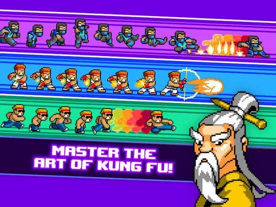 Kung Fu Z – игра для IOS, где вы будете управлять кунг-фу мастером и уничтожать армию зомби. Пока вы наслаждались медитацией злой доктор заполонил ваш город толпами зомби и теперь вам не чего не остается как с помощью кулаков и ума спасти город от ходячих мертвецов. Прокладывайте дорогу своему герою и не дайте доктору одолеть вас. Наносите разрушительные удары руками и ногами и наслаждайтесь эпическими битвами с многочисленными зомби. Наслаждайтесь отличной графикой и музыкой, а также примеряйте на своего героя тонны снаряжения. Вступайте в схватку с сильными боссами и прокачивайте умения своего бойца.