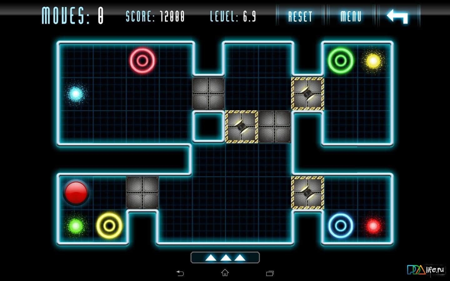 Kunundrum - отличная игра в жанре головоломки для смартфона. Как и само название, игра непростая. 150 уровней с постепенно нарастающей сложностью. Вам необходимо переместить искрящиеся шарики к обручам, цвет которых соответствует цвету шарика. Шарик принесет вам очки только в том случае, если он попадет в обруч и остановится в нем. Путешествуя по различным лабиринтам, шарики могут встречать на пути, как бонусы, так и анти-бонусы. Вы столкнетесь с телепортами, изменением направления, блокаторами, воротами и переключателями, которые существенно затрудняют намеченную цель. Но неоновый стиль и красочные цели делают эту игру не только занимательной, но и очень красивой, отличное сочетание! Графика, в которой выполнена игра погружает вас в атмосферу реальности и красоты новейших современных технологий. Механика тут, кстати, тоже потрясающая, все движется и деформируется так, будто все происходит на самом деле. Вас ждет также отличный саундтрек в электроном стиле. Игра стоит свеч! попробуйте скачать игру для Android - настоящее чудо инженерной мысли.