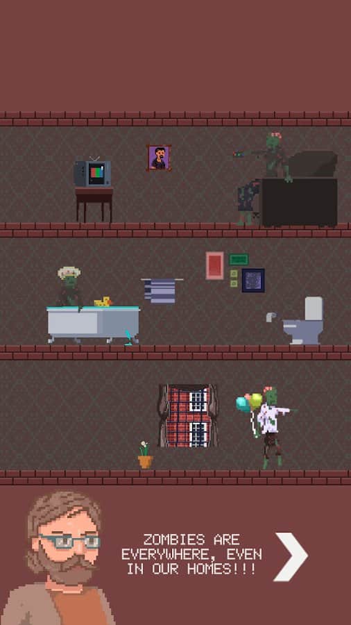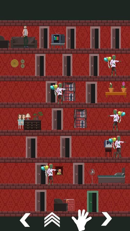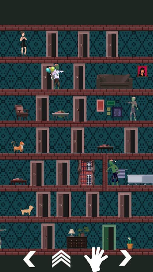 Квартира Зомби – занимательная игра на андроид, где вы будете спасать людей от зомби. Наступил зомби-апокалипсис и спустя две недели выжившие люди продолжали седеть в своих квартирах боясь выйти на улицу. Вашей задачей будет помочь людям выйти из квартир перемещаясь по этажам и открывая двери. На каждом этаже вас будут поджидать опасные зомби, обходите их и выполняйте свою миссию. Вашей главной целью будет помочь как можно большему количеству людей. Исследуйте все этажи здания и открывайте для себя новых персонажей.
