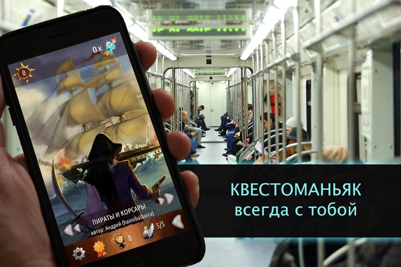 Тут нужно уточнить, что приложение является сборником текстовых квестов самых разных жанров, включая приключения, фэнтази, любовный роман, хоррор, и так далее. Ну а "Квестоманьяк" видимо в представлении авторов это сам читатель, который без ума от квестов.