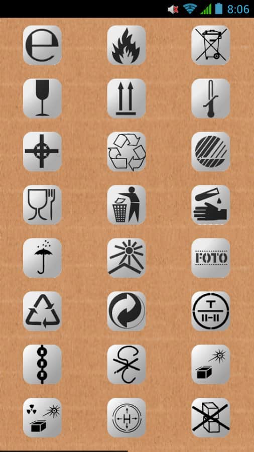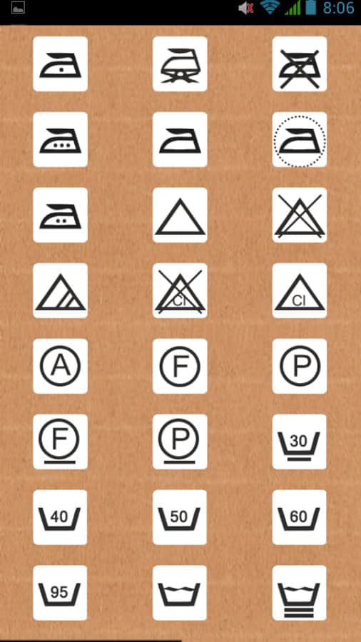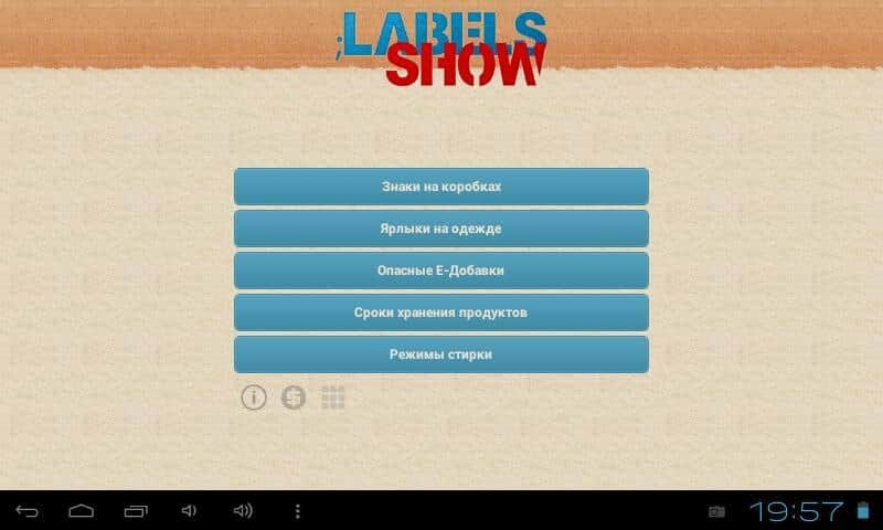 Labels Show - Знаки и ярлыки – очень полезное приложение для андроид устройств уместившее в себе самую необходимую информацию по ярлыкам и значкам на коробках и одежде, таблицу вредных Е-добавок, а так же режимам стирки. Никакой лишней информации все по делу. При открытии любого из разделов, открывается маленькое превью-картинки с наиболее часто используемыми ярлыками.