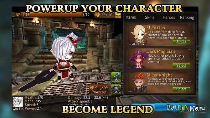 Labyrinth of Battle – RPG на андроид, где вам предстоит пройти опасные подземелья и сразиться с ужасными монстрами. Выбирайте кем вы хотите быть рыцарем, лучником или магом и отправляйтесь в опасное путешествие, исследуя темные комнаты пугающего подземелья. Каждый герой имеет свои уникальные способности и неповторимый стиль боя, сражаясь с монстрами с помощью меча, забрасывая их дождем из стрел или уничтожая их с помощью заклинаний. Сражайтесь на протяжении всей игры с полчищем монстров и боссов и открывайте для себя новые карты и артефакты. Уровни в игре рандомные так что вам не придется скучать.