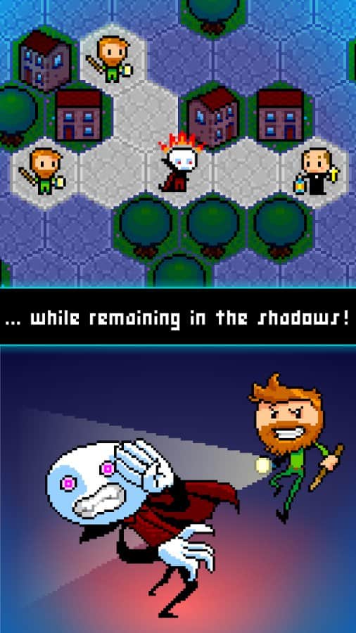 Как водится действие происходит ночью, вдоволь насладившись кровью живых, вы отправляетесь на заслуженный покой, но напуганные крестьяне жаждут расплаты. А вам отводится роль беглеца. Lamp and Vamp для Андроид это пошаговая головоломка в которой вам предстоит в роли вампира перемещаясь по игровому полю постараться избавиться от преследования.