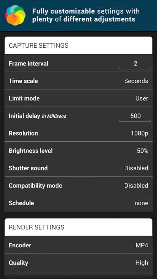 Lapse It - Time Lapse Pro – великолепное приложение для любителей невероятной съемки на вашем андроид устройстве от разработчиков Interactive Universe. Благодаря Lapse It - Time Lapse, вы можете снимать рассветы и закаты, снять распускание цветов, движение моря и многое другое. Что для этого нужно? Все просто – выбираем в настройках нужные функции и устанавливаем не подвижно свое андроид устройство. Приятной съемки и великолепных воспоминаний вам!