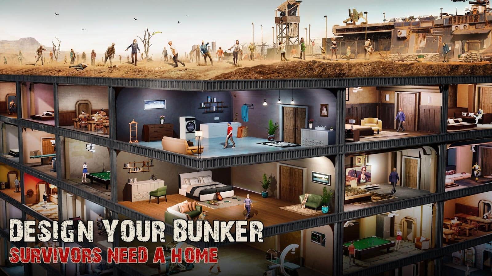После того, как мир заполонили толпы зомби, люди стали строить бункеры под землей, где их не достанут зомби. Тебе выпала честь стать руководителям одного из таких бункеров. Тебе нужно будет решать различные вопросы, от достаточного количества еды и воды до защиты подземного городка от зомби и других выживших.