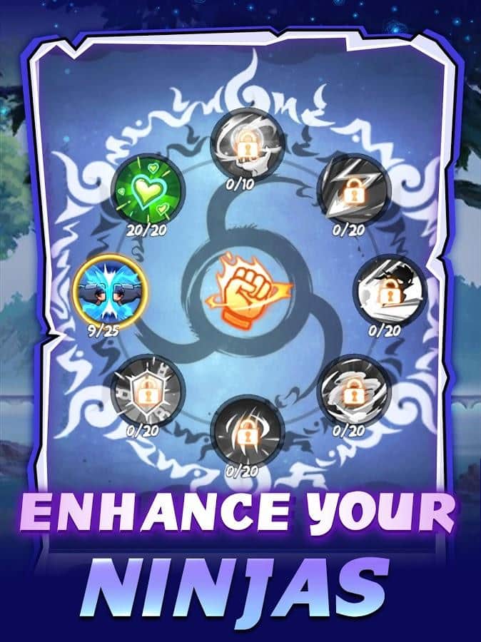 В вселенной существуют сильнейшие древние учителя, которые готовы обучать молодых людей приемам каратэ. Однажды они призвали вас как мудрого главнокомандующего, чтобы собрать команду уникальных ниндзя и сразиться с силами зла. Вытворяйте невероятные трюки, используя специальные навыки каждого персонажа и разбавьте разные локации битв. Проходите тесты, в то же время защищая свою территорию от врагов и отправляя некоторые войска в походы. Тщательно изучите этот невероятный мир, чтобы стать одним из них.