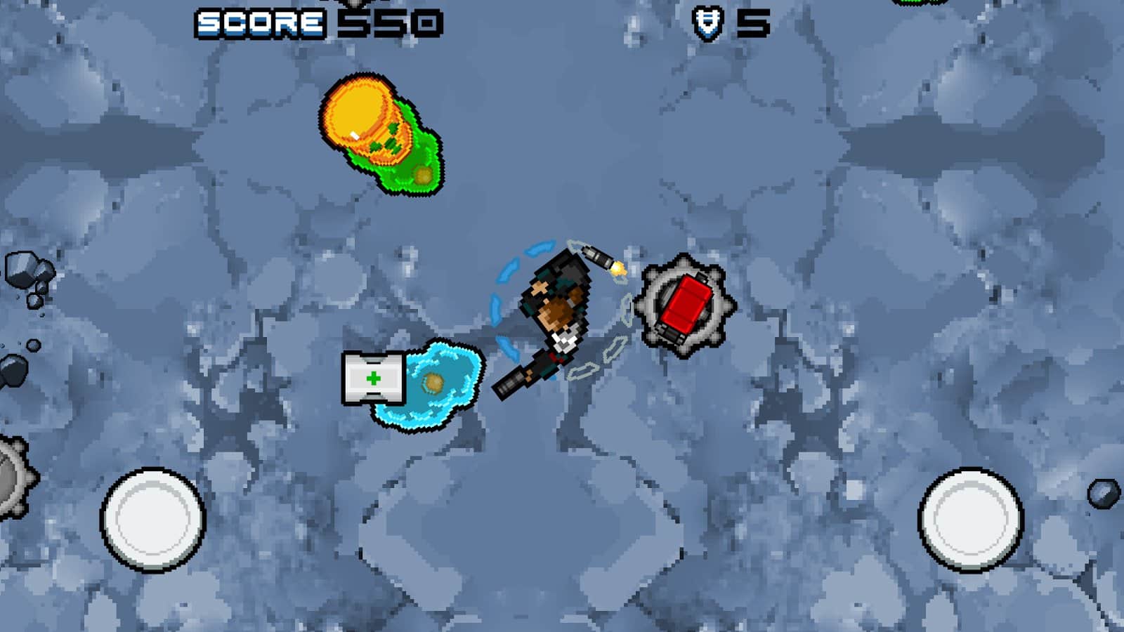 Last Stand - экшен аркада с видом сферху, выполненная в пиксельном стиле. Данный проект придется по вкусу всем поклонникам классических стрелялок и сейчас вы поймете почему. Сюжетная линия развивается в далеком будущем, во время колонизации отдаленных планет. Но космические открытия заметно притормозились из-за разгоревшейся войны между правящими кланами. И вот на одной из неосвоенных планет высаживается десант, в составе нескольких подразделений, ваша команда не подозревает что ваши сослуживцы из соседнего подразделения уже перешли на сторону врага. После кровопролитного сражения вы остаетесь совсем один на планете населенной крайне опасными существами. И теперь ваша задача продержаться до прихода подмоги. Игровой процесс также довольно знаком, уничтожайте как можно больше инопланетных тварей, зарабатывайте деньги на которые покупайте оружие, боеприпасы, боевых дронов.